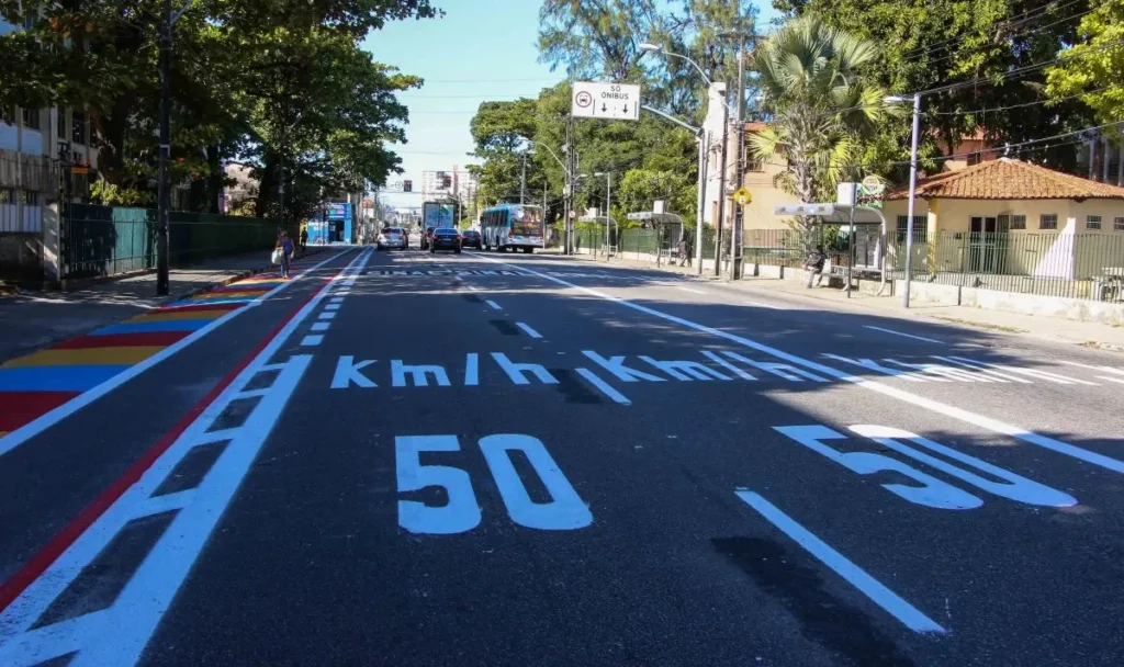 - Vias locais: ruas predominantemente residenciais e/ou onde há escolas continuam com limites de velocidade fixados em 30 km/h.