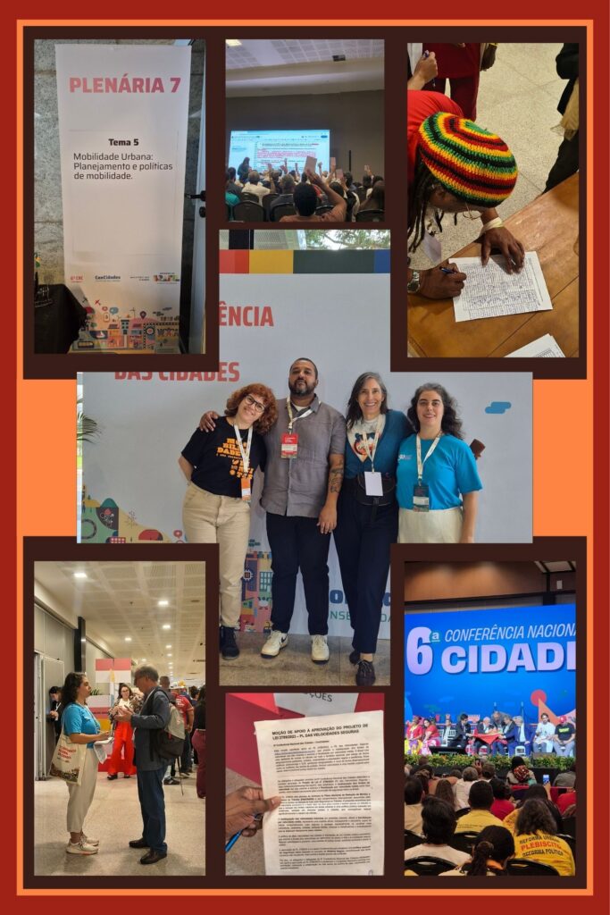 Essas organizações atuaram intensamente na plenária do eixo de mobilidade urbana, defendendo com sucesso a inclusão da segurança viária como tema central da agenda urbana federal. Além disso, Ciclocidade e UCB integram a Coalizão Triplo Zero, movimento que defende cidades com zero mortes no trânsito, tarifa zero no transporte público e zero emissão de poluentes que apresentaram as moções de apoio a PL 2789/2023 (zero mortes) e a PEC 25/2023 (SUM e Tarifa Zero)